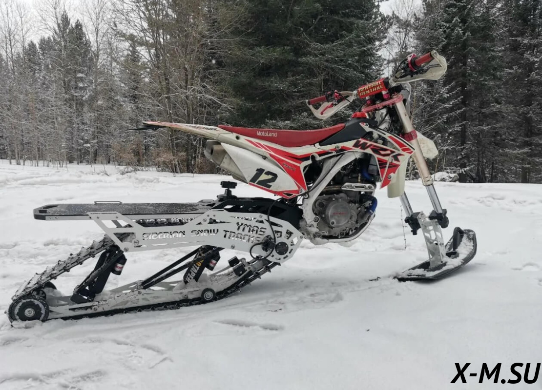 SiberianSnow от YmasTracks — универсальный гусеничный комплект для внедорожных мотоциклов. Гусеничный мотоцикл (СНОУБАЙК) это, по сути, одноколейный снегоход. Вы получаете возможность продлить мото...